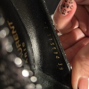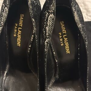 Elevate your style with these stunning Saint Laurent black metallic pumps. Perfect for any occasion, these shoes add a touch of glamour to your outfit. Authentic YSL. Size 39 fits like an 8 Yves Saint Laurent