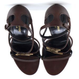 Saint Laurent Women's Cassandra Heeled Sandals Leather 100 Brown