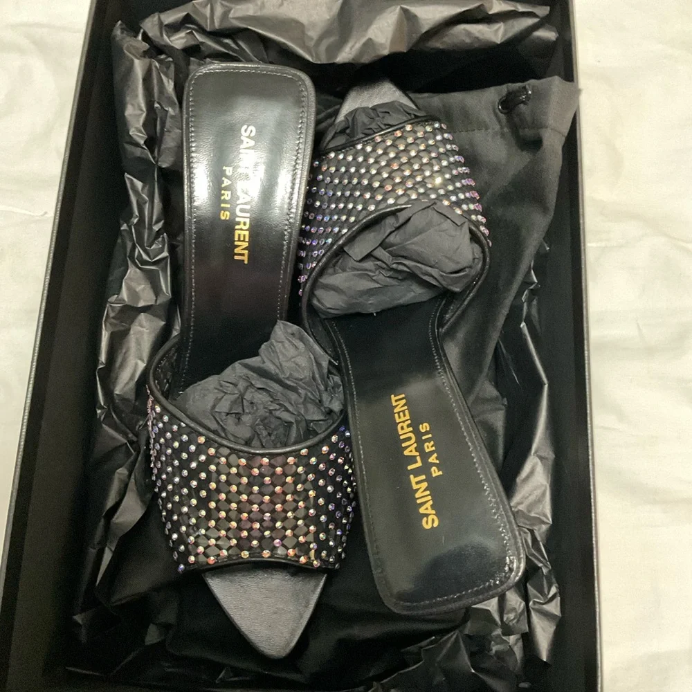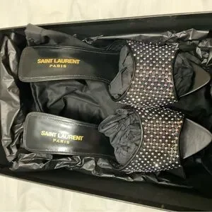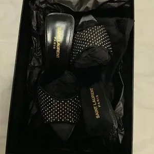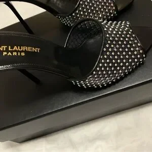 Saint Laurent Women's Liz Embellished High Heel Slide Sandals size 38