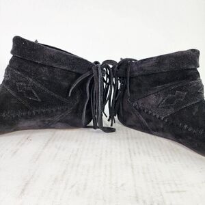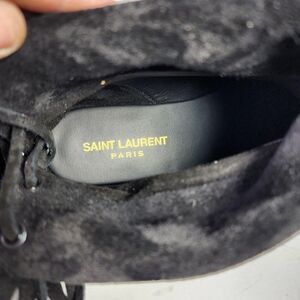 Saint Laurent Women's Nino Suede Fringe Boots US 6 Black Flat Ankle Bootie.