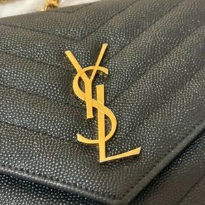 - Features signature YSL logo lettering
