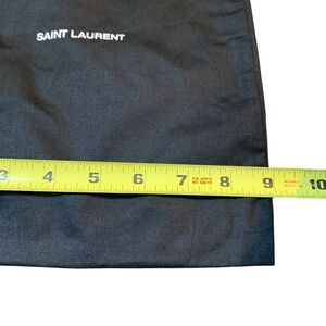 The Saint Laurent YSL Black Dustbag is a luxurious and stylish accessory storage pouch made of cotton canvas. Featuring the iconic Yves Saint Laurent logo, this solid black pouch is perfect for storing small items like jewelry, accessories, or other valuable items. With dimensions of 9x12 inches, this versatile pouch is suitable for both men and women and comes in a classic designer theme, making it a chic and practical gift option for any fashion-forward individual. New without tag.