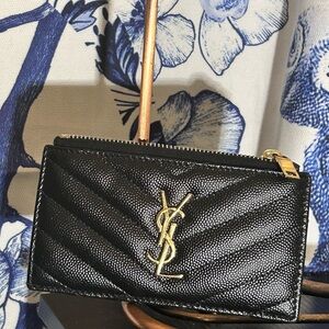 Saint Laurent YSL Black Quilted Envelope Wallet Gold Hardware w/ Box