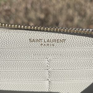 Saint Laurent YSL Cassandre Matelasse Zip Around Wallet Leather White And Gold