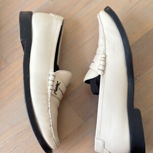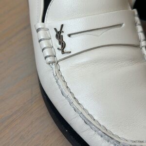 Saint Laurent YSL Le Leather Loafer with Plaque in White Size 37 / US 7
