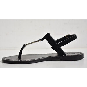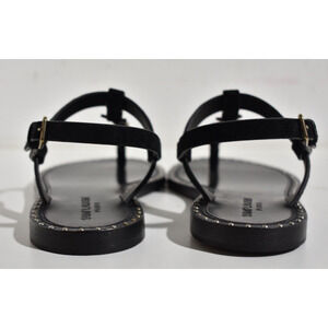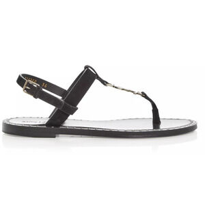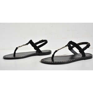 Saint Laurent YSL Logo Iota 05 Black Suede Studded Thong Slide Flat Sandal 35