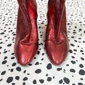 Saint Laurent | YSL Lou Crackled Metallic Red Leather Designer Heeled Boots 37