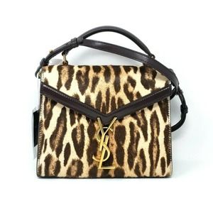 100% Authentic Saint Laurent YSL Mini Cassandra Leopard Print Calf Hair Top Handle Bag Brown NEW $2850