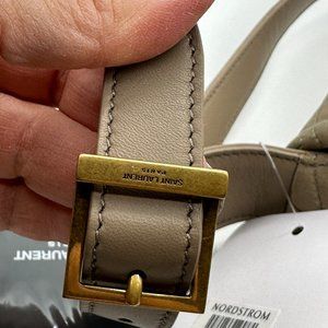 Adjustable leather shoulder strap (8" drop at the longest setting)