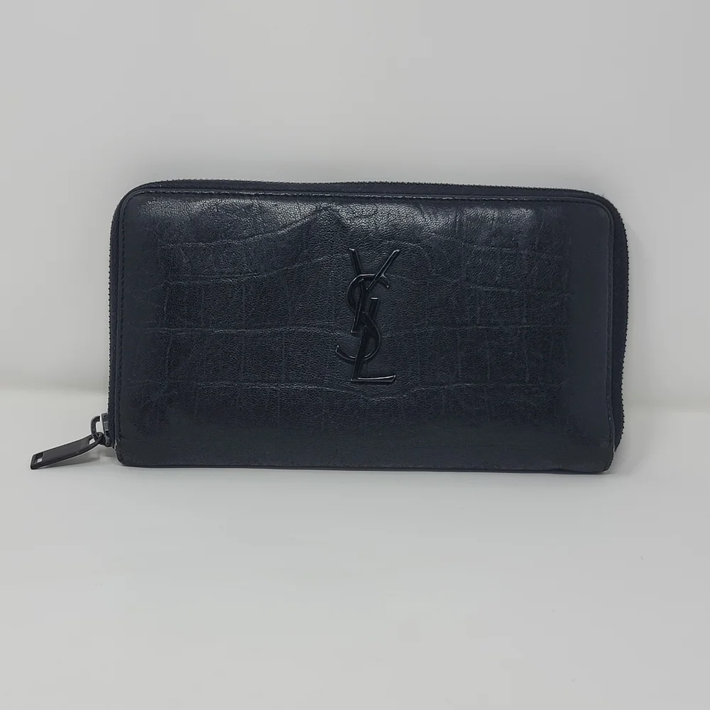 Saint Laurent YSL Organizer Croc Embossed Zippy Long Wallet
