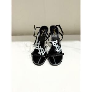 Saint Laurent YSL Patent-Leather Heeled Slingback Sandals Black Women's EU 37