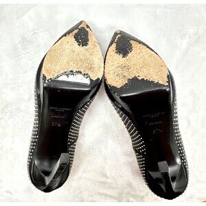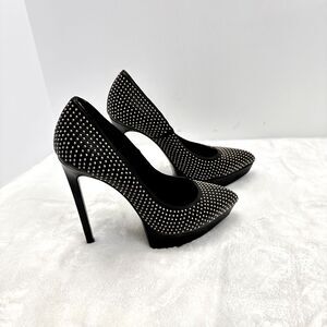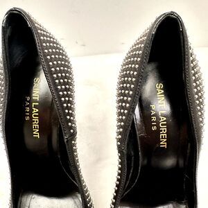 Saint Laurent YSL Studded Janis Black Leather Pumps Heels SZ 37.5 Italy