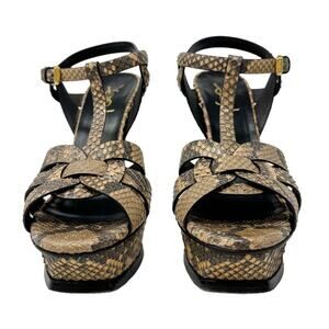 Saint Laurent YSL Tribute 105 Python Platform Strap Heels Sandals size 38 US8