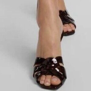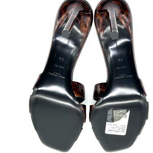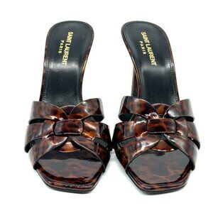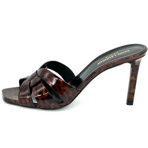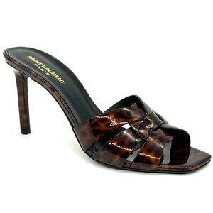 Saint Laurent YSL Tribute 85 Leopard Tartaruga Patent Mule Sandals Heels