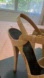 Fairly used. Comes with shoe bags, original box, two replacement heels. Heels need to be replaced.
