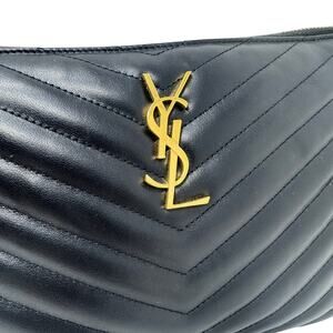 Saint Laurent YSL Uptown Pouch Black Chevron Quilted Leather Wristlet Bag Clutch