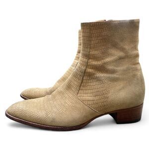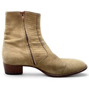 Saint Laurent YSL Wyatt Boots Mens 43.5 10.5 Tobacco Lizard Effect Suede Chelsea