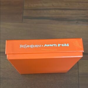 Vibrant orange box with iconic YSL logo. Perfect for storing accessories.