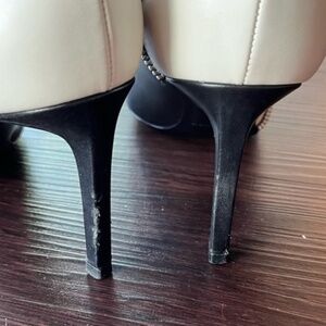 Authentic Saint Laurent Zip accent black and white heels/pumps Size 36.5/6.5. Black and white leather with zipper accent. Please know your size, it runs true for me but I do not have wide feet. Some scuffs at toes and heels, creasing of top of toes, please view pictures carefully. No box or dustbags included. No trades.