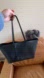 Chic Saint Laurent tote in dark leather. Includes matching pouch. Sleek design for everyday elegance.