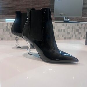 Beautiful YSL black patent booties. Worn once. Size 38.