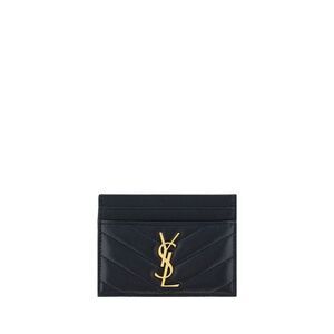 Sophisticated card holder with iconic YSL logo. Sleek black leather with gold accents. Absolutely new never carried comes with dust bag. Great gift idea.