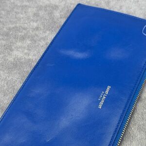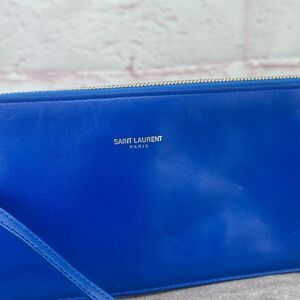 Saint Laurent Blue Leather Zippered Pouch Clutch