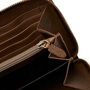 Indulge in opulence with the Saint Laurent Round Zipper Long Wallet. Crafted from exquisite brown leather, this women's accessory exudes timeless elegance. The sleek round shape and convenient zipper closure add a touch of modernity to its classic design. With ample space for your essentials, this wallet is both practical and stylish. Elevate your everyday look with this luxurious Saint Laurent creation.
