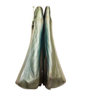 Saint Laurent Metallic Blue Leather Bow Ballet Flats Size 391/2 US 9