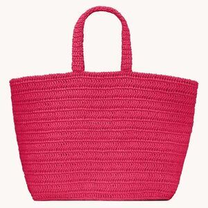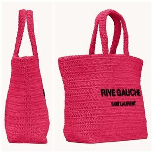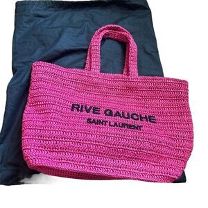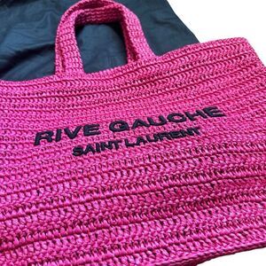 Saint Laurent Pink Rive Gauche embroidered raffia tote bag