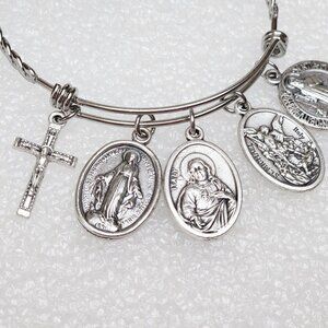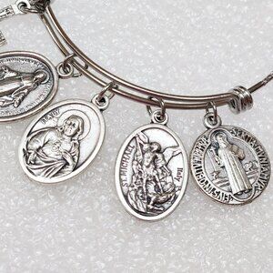 Saint Michael Guardian Angel Charm Bangle Bracelet Spiritual Catholic Jewelry
