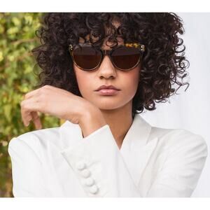 These classic sunglasses have a slightly oversized cat eye silhouette that adds a little extra style to your look. They come in a lovely tortoiseshell style. They come in a faux leather black case. New without tags, they did not come with tags just packaging.