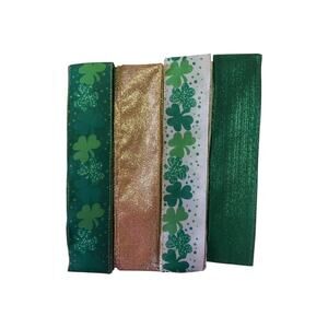 • 4 premium wired ribbons (designs include shamrocks, glitter gold, and vibrant green patterns)