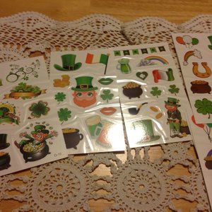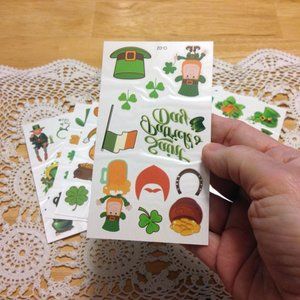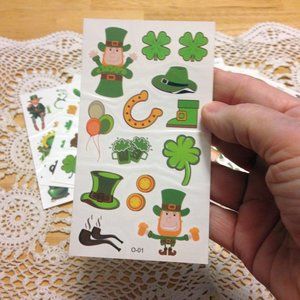 8 sheets of St. Patrick's Day temporary tattoos. Clovers, Leprechauns and other symbols of St. Patty's Day fun.