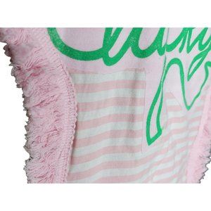 Featured is a green double breasted jacket with a special Irish touch. The back features a machine sewn pink and white stripe with a shamrock and "Happy Go Lucky". The pink trim makes it extra special. It is 100% cotton and feels like a lightweight denim or twill. Great for anyone who feels a little or a lot Irish, for St. Patrick's Day, or all year round. The jacket itself is from Inc and is marked size 1X. It measures 21.5 inches across from pit to pit. It has side slash pockets with a faux flap. The sleeves are 3/4 length. The jacket is slightly cropped and measures 21.5 inches from collar to hem. It is truly one of a kind!