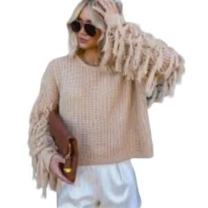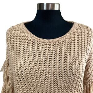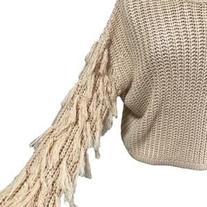 Saint Secrets Chunky Rib Knit Cropped Sweater Fringe Sleeve SM Hobo Hippie Gypsy. Scoop neck. Drop shoulder.