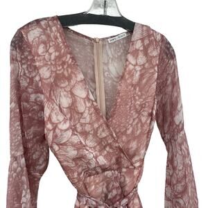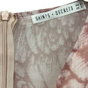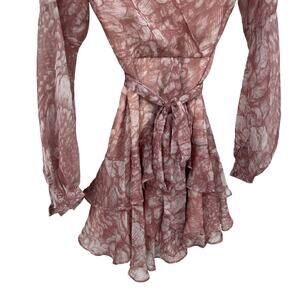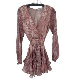 Saint + Secrets Kerry Layered Balloon Sleeve Ruffle Mini Dress Nude Pink Small