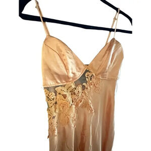 Saint + Secrets Yellow Satin Lace Midi Slip Chemise Dress Size Small