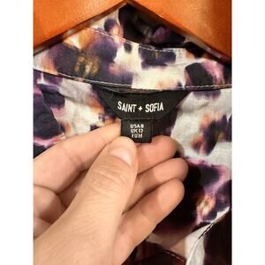 Saint & Sofia Black Blurred Floral Button Down Longsleeve Blouse Size 8