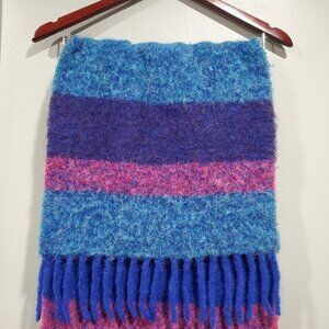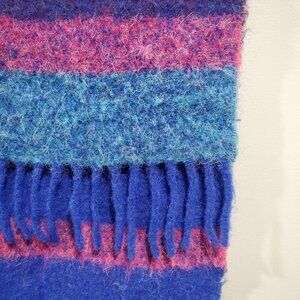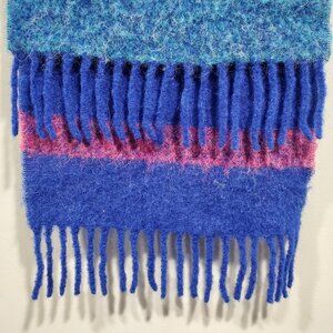 Saint + Sofia Hand Woven Wool And Mohair Scarf Blue Pink Purple Fringe 14"x70"