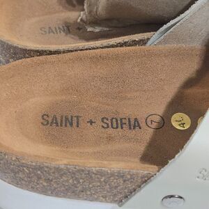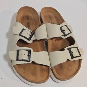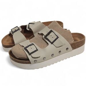 Saint + Sofia Sutton Studded Slide 2 strap Sandals Sz 9/40 Platform Ivory Silver