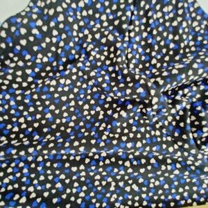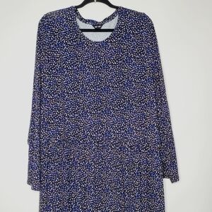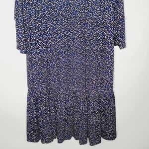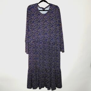 Saint + Sofia Long Sleeve Tiered Maxi Dress Size 18. Black with an all-over blue and white polka dot heart print.