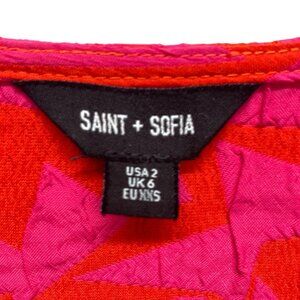 Saint & Sofia Victoria Festival Jacquard Shift Dress, Size 2, Red & Pink, Ruffle