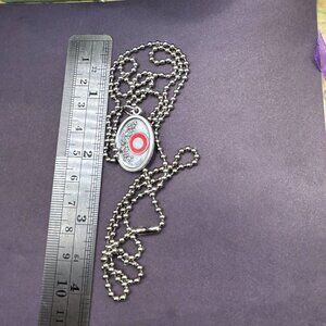 Heavier weight vintage silver tone or plated religious medal necklace. Medal is vintage, shows wear and age. Chain is high quality all steel and approximately 30 inches end to end. Ball joint clasp.