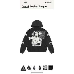 Saint Tears Graphic Hoodie Vintage Washed Blue Men’s Size Large NWT Heavyweight