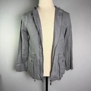 Saint Tropez West 100% Linen Jacket, Gray Drawstring, Size Small, Excellent Condition