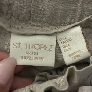 Saint Tropez West 100% Linen Tan Skirt Y2K Elastic Waist Mini Size Large