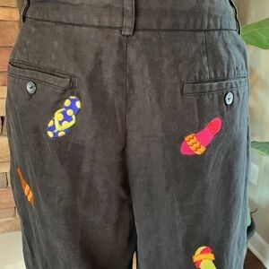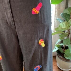 Saint Tropez West size 14 100% linen black cropped wide leg capris with colorful embroidered flip flops. Front and back pockets. Lightweight. So cute for your beach vacation.