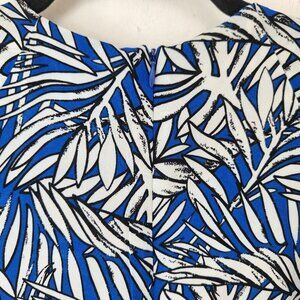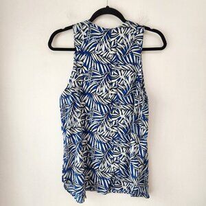 Saint Tropez West Blue Tropical Leaf Print Sleeveless Blouse Top Shirt Tank L