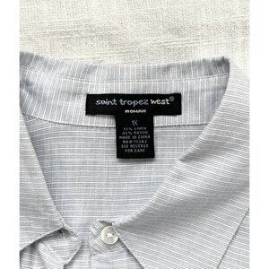 Saint Tropez West Women’s Button Up Linen Blend Shirt Blue White Sz 1X